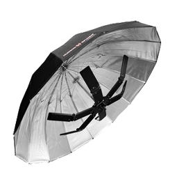 - 1 x Deep Umbrella. 43” diameter. Soft silver by Wescott.