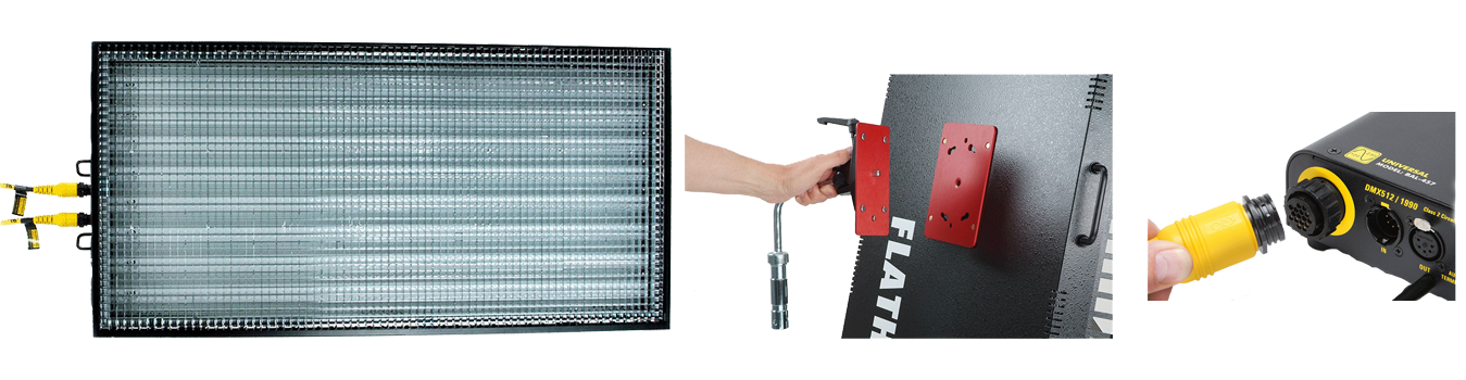 The Flathead 80 system was designed as a softlight source that can be plugged into the wall on location. With its narrow profile and size, the Flathead 80 can approximate the quality of light from bounced sources without losing set space.